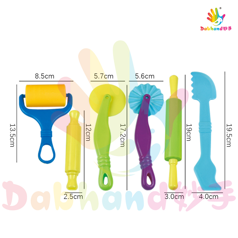 擀面杖及刀具6件套这些工具用于在彩泥上制作纹理和花纹,或者压出图案。可以擀平彩泥,按下或印出花纹。